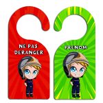 Impression des 2 côtés avec une face “Ne pas déranger” et sur la seconde face, le prénom de l’enfant.